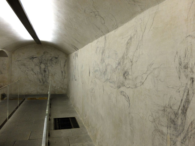 Dans son style aisément reconnaissable - musculature, mouvement, puissance -, l’artiste livré à la solitude avait alors couvert les murs d’esquisses, cherchant à fixer son inspiration en vue d’oeuvres futures.