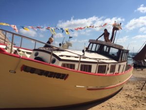 Des flottes classées selon les types de bateaux : des très performants les “requins” et “dragons”, 2 Yoles de Bantry, une catégorie “Belle Plaisance” dont le dernier bateau de Jules Verne, le “Saint Michel 2”; on trouve également des répliques. Toutes ces pièces uniques encore opérationnelles, rescapées du temps, naviguent en mer leurs expériences respectives à proximité des côtes pour rester visibles par le public, à la fois en mer que sur terre, avec cet impressionnant ballet statique de coques à flanc de sable lors de l’incroyable échouage à marée basse (Crédits photo: Anne Giraud pour “Chapitre T”).