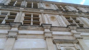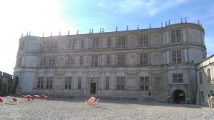 Vue de la façade du Château, de style dit “François 1er” construite au milieu du 16ème siècle par Louis Adhémar, complétée au 17ème siècle par des niches à coquilles et des pots à feu sur la toiture, restaurée au cours des années 1913-1931 (Crédits photos: Alexandre Plateaux).